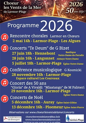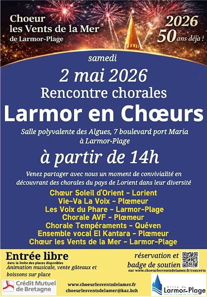 Samedi 2 mai à 14h00 le Choeur « Les Vents de la Mer » vous invite à Larmor-Plage et plus encore selon le programme ci-dessous